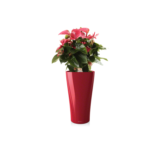 Состав композиции: антуриумы + кашпо с автополивом Lechuza Delta, пересадка включена в стоимость.