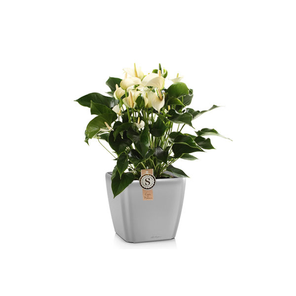 Состав композиции: антуриум + кашпо с автополивом Lechuza Quadro, пересадка включена в стоимость.