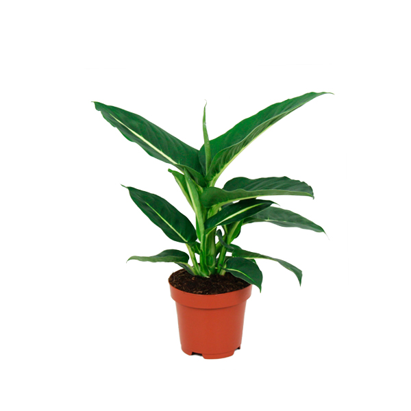 Диффенбахия Green Magic отличается крупными продолговатыми листьями насыщенно-зелёного цвета с яркой светлой жилкой по центру. Это эффектное растение отлично смотрится в современном интерьере и визуально оживляет пространство.