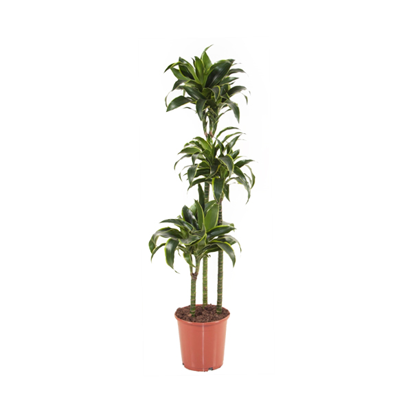 Драцена «Дорадо» на стволах — элегантное тропическое дерево с густыми дугообразно изогнутыми листьями: тёмно-зелеными с яркой лимонно-жёлтой каймой. Компонуется трёхствольной формой, создавая выразительную скульптурную композицию, которая оживляет интерьер.