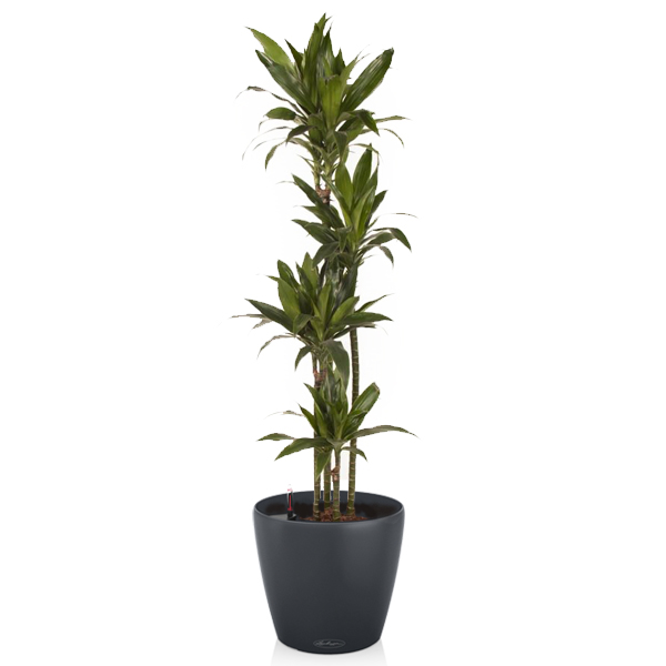 Состав композиции: драцена Джанет Крейг 4 ствола + кашпо с автополивом Lechuza Classico 43, пересадка включена в стоимость.