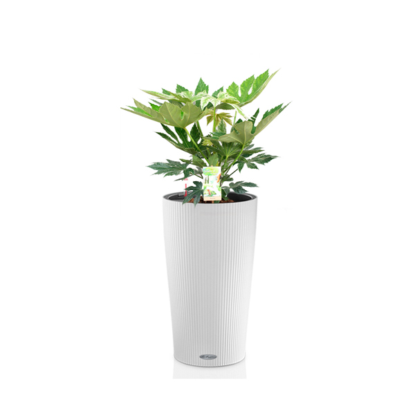 Состав композиции: фатсия японская + кашпо с автополивом Lechuza Cilindro 32, пересадка включена в стоимость.