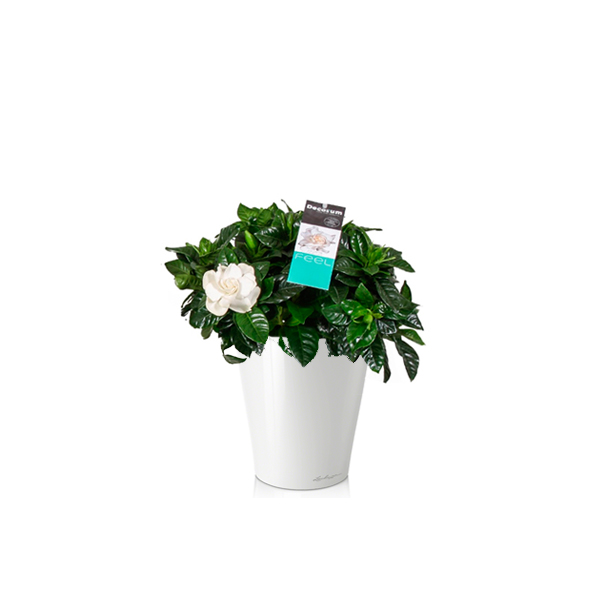 Состав композиции: гардения + кашпо с автополивом Lechuza Deltini, пересадка включена в стоимость.