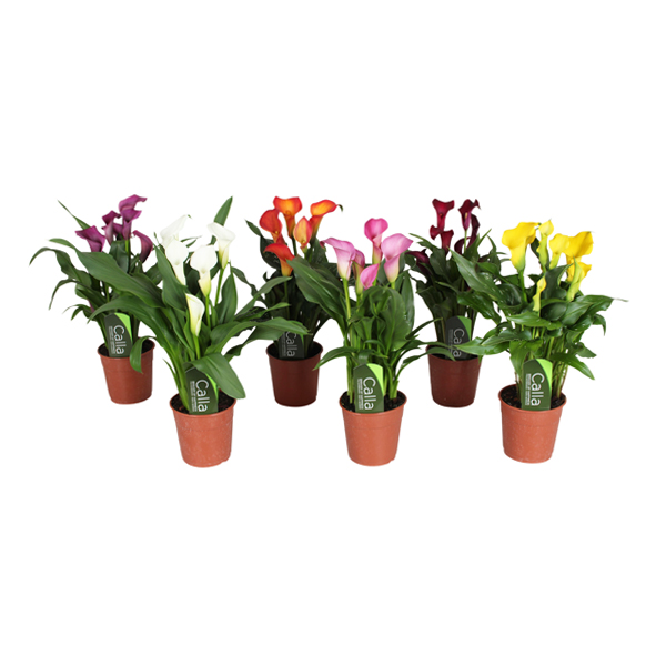 Каллы — нежные цветы, растут плотным кустиком. Отличный подарок!