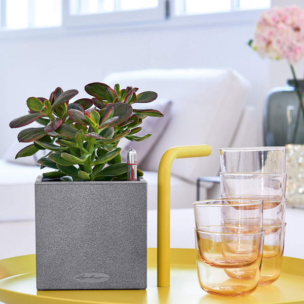 Кашпо Lechuza Canto Stone — небольшое настольное кашпо с фитилем для автополива. Идеально для выращивания пряных трав и рассады!