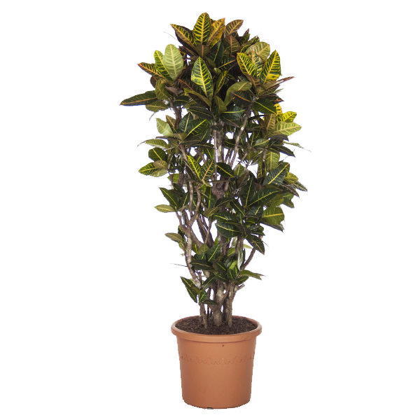 Кротон Петра — сорт кротона с гладкими широкими листьями, преимущественно желтых оттенков. Очень эффектное деревце! Бранч означает, что растение выращено на крепком стволе с листьями вокруг него.