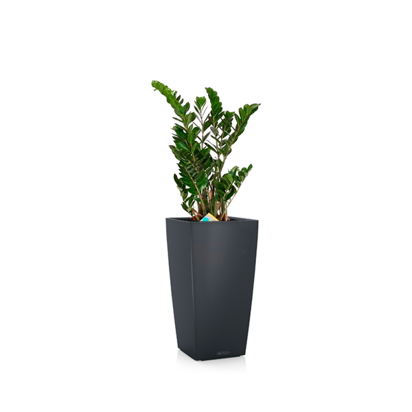 Состав композиции: замиокулькас + кашпо с автополивом Lechuza Cubico, пересадка включена в стоимость.